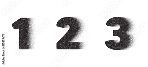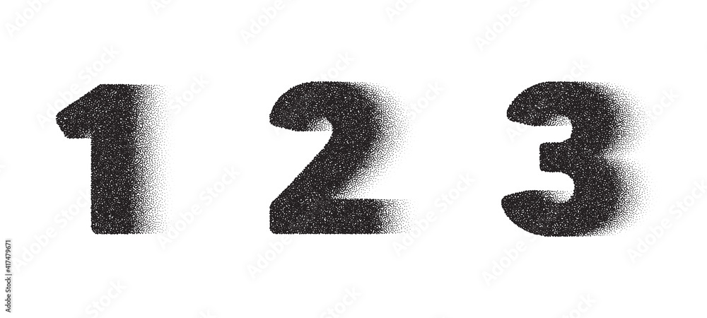 The watermark will not be included on Canvas Print.: 1th, 2nd and 3rd dotwork number - 123 noise stipple dots digits - sand grain effect - black dots grunge