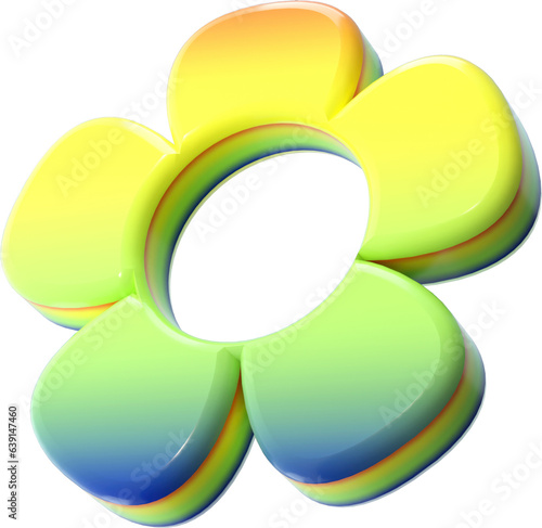 The watermark will not be included on Canvas Print.: 3d abstract yellow plastic chrome flower in a y2k style with a transparent background