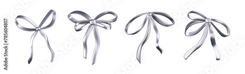The watermark will not be included on Canvas Print.: 3d chrome liquid bow ribbon in y2k style isolated on a dark background - render of modern silver aest