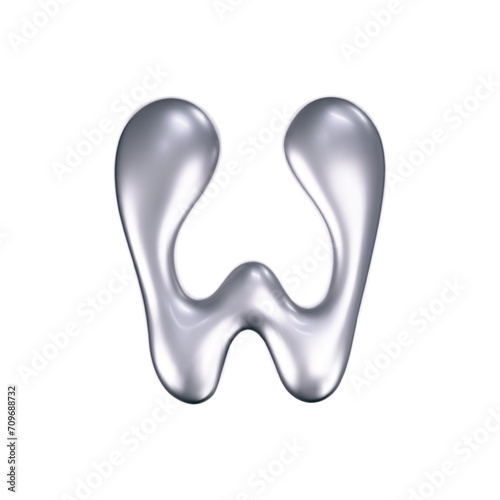 Canvas Prints 3d chrome liquid letter w in y2k style isolated. render of 3d metal inflated bubble alphabet with gl