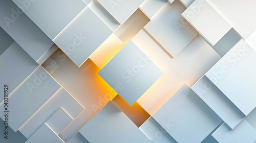 The watermark will not be included on Canvas Print.: 3d empty white color technology concept geometric square background - square 3d modern abstract white