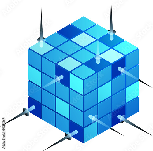 Canvas Prints 3d illustration of shiny blue data cube on white background for big data concept. - Canvas Prints Canvas Prints 3d illustration of shiny blue data cube on white background for big data concept. - Canvas Prints