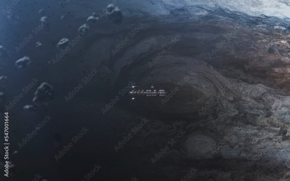 The watermark will not be included on Canvas Print.: 3d illustration of spaceship orbiting jupiter - 5k realistic science fiction art - elements of image p