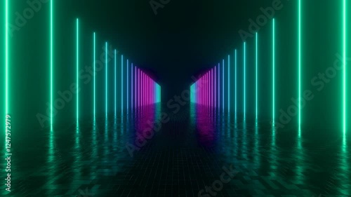 The watermark will not be included on Canvas Print.: 3d loop animation, abstract futuristic background with colorful glowing neon lights, 4k seamless