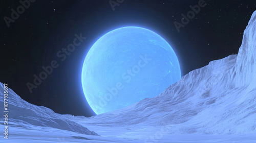 The watermark will not be included on Canvas Print.: 3d planet alien mountain outer space universe with shiny star dark blue technology science backgroun