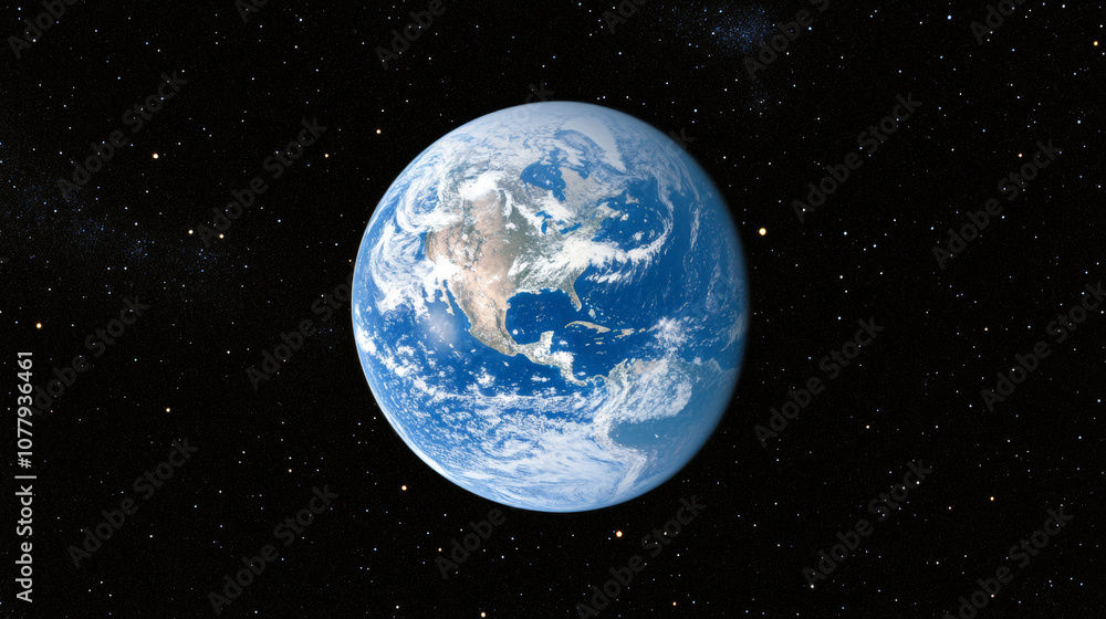 The watermark will not be included on Canvas Print.: 3d planet earth in space universe with shiny star dark blue technology science background with copy