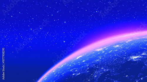 The watermark will not be included on Canvas Print.: 3d planet earth in space universe with shiny star purple blue technology science background with cop