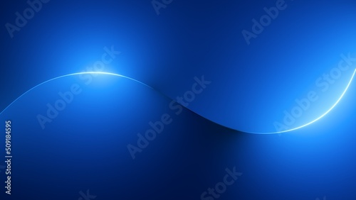 The watermark will not be included on Canvas Print.: 3d render, abstract blue neon background with glowing smooth wavy line