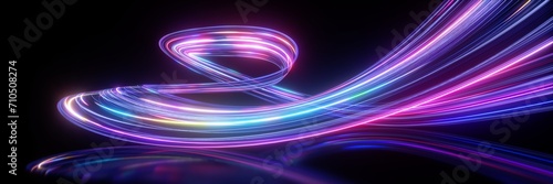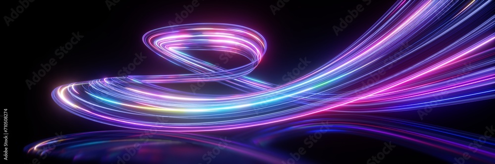 The watermark will not be included on Canvas Print.: 3d render - abstract background of neon ribbon - fluorescent ines glowing in the dark room with floor