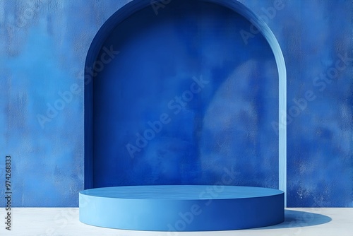 The watermark will not be included on Canvas Print.: 3d rendering blue wall with minimal podium scene background