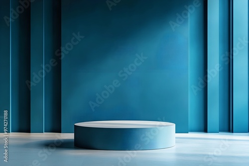 Canvas Prints 3d rendering blue wall with minimal podium scene background