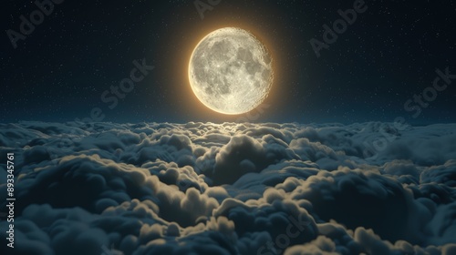The watermark will not be included on Canvas Print.: 3d rendering of full moon shining above the clouds at night sky background -