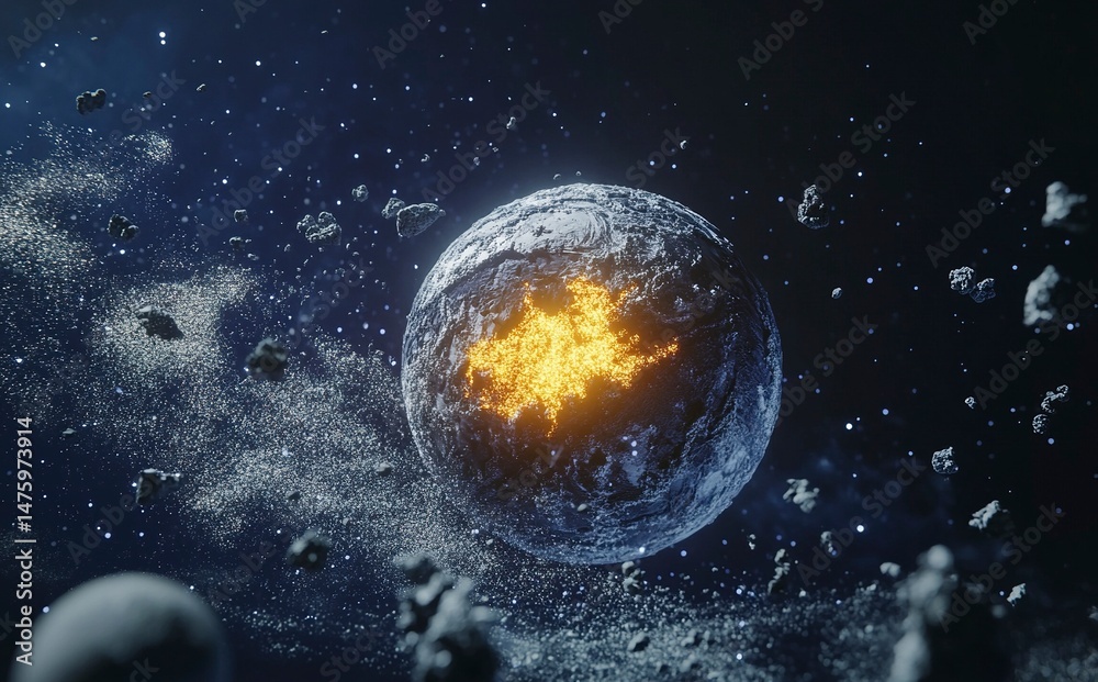 The watermark will not be included on Canvas Print.: 3d rendering of the earth in space with the sun and stars behind it - elements of the planet earth, a
