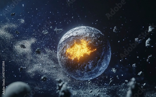 Canvas Print : 3d rendering of the earth in space with the sun and stars behind it - elements of the planet earth, a