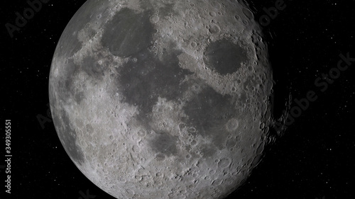 The watermark will not be included on Canvas Print.: 3d rendering of the moon against the background of space with the illumination of craters and lunar