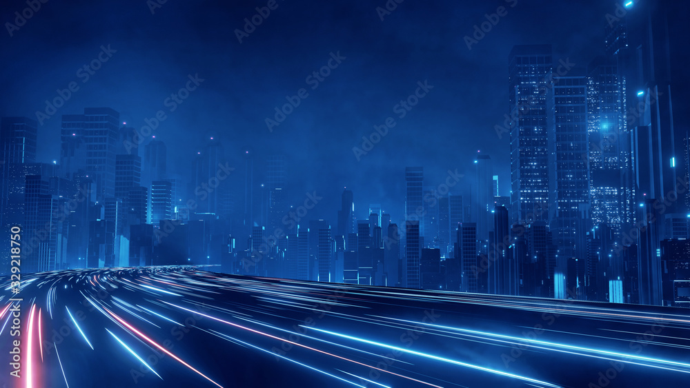 Canvas Prints 3d rendering of warp speed in hyper loop with blur light from buildings' lights in mega city at nigh