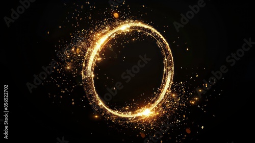 The watermark will not be included on Canvas Print.: 3d sparkling golden metal circle with shiny glitters isolated on black background - generative ai