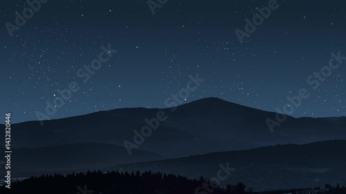 Canvas Print : A a movement of stars in the night sky with the view of mountains -