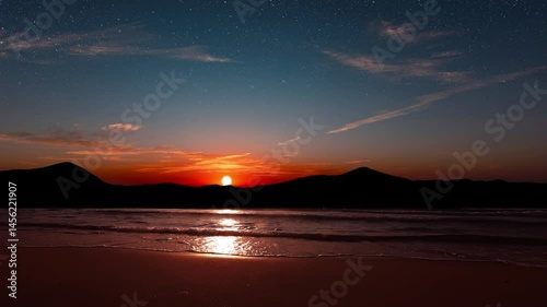 Canvas Prints a a movement of stars in the night sky with the view of mountains.