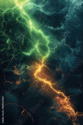 The watermark will not be included on Canvas Print.: A background dark stormy with neon green lightning - generative ai -