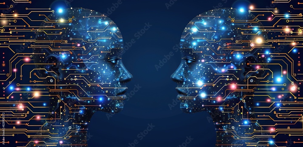 Canvas Prints a background with an artificial intelligence concept with a facing face design and circuit lines beh - Canvas Prints Canvas Prints a background with an artificial intelligence concept with a facing face design and circuit lines beh - Canvas Prints