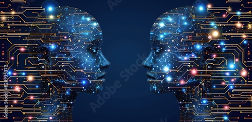 Canvas Prints a background with an artificial intelligence concept with a facing face design and circuit lines beh