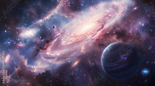 Canvas Print : A beautiful, colorful space scene with a large planet in the center and a smaller planet in the back