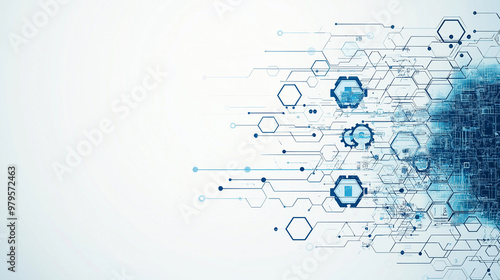 The watermark will not be included on Canvas Print.: A blue and white background with a lot of hexagons and dots