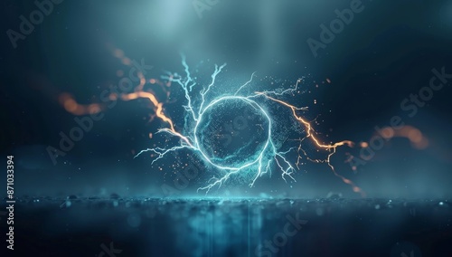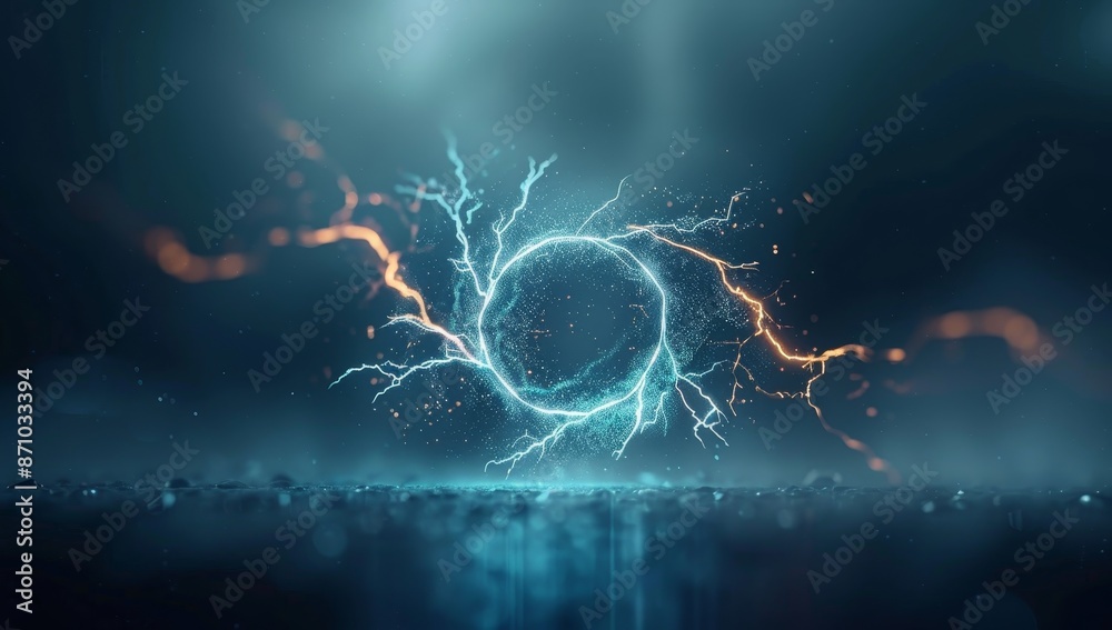 The watermark will not be included on Canvas Print.: A blue circle with red and orange sparks surrounding it by ai generated image