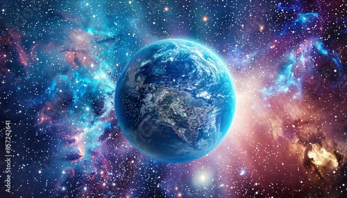 Canvas Prints a blue planet in the middle of a colorful galaxy by ai generated image - Canvas Prints Canvas Prints a blue planet in the middle of a colorful galaxy by ai generated image - Canvas Prints
