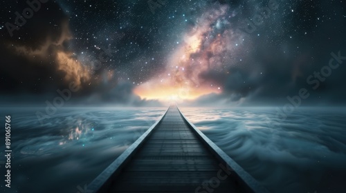 Canvas Prints a bridge over a body of water with a starry sky in the background. the bridge is illuminated by the  - Canvas Prints Canvas Prints a bridge over a body of water with a starry sky in the background. the bridge is illuminated by the - Canvas Prints