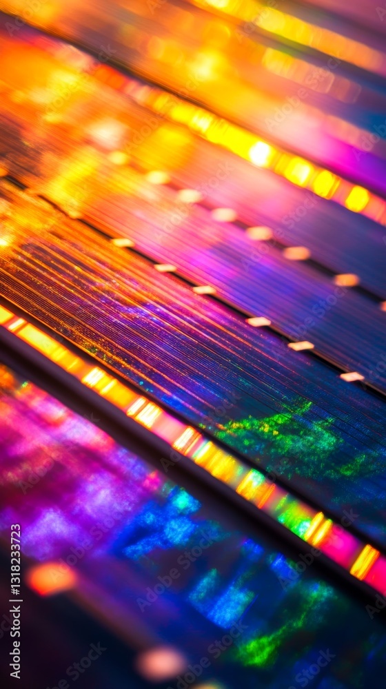 Canvas Print : A captivating abstract image showcasing vibrant light reflections and colorful patterns on a texture