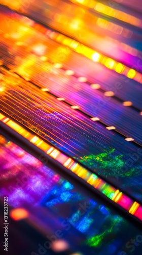 The watermark will not be included on Canvas Print.: A captivating abstract image showcasing vibrant light reflections and colorful patterns on a texture
