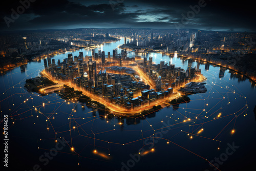 Canvas Prints a captivating aerial view of a city skyline at night, illuminated by a web of dazzling lights. gener