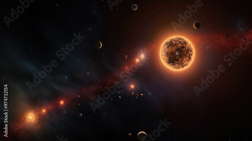 Canvas Prints a celestial tapestry of stars and planets, with a fiery red glow emanating from a distant star.