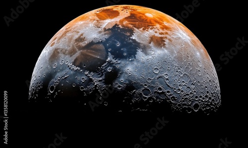 The watermark will not be included on Canvas Print.: A close up of the moon with a red and blue color scheme