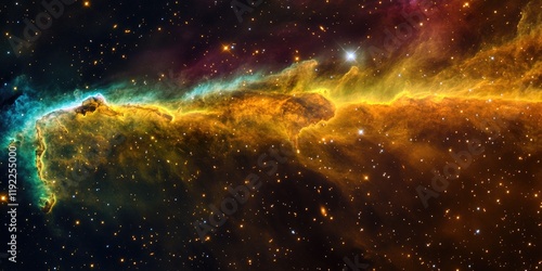 Canvas Print : A close-up view of a nebula within a galaxy, with vibrant colors of gas and dust illuminated by near