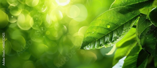 The watermark will not be included on Canvas Print.: A close up view of a stunning green leaf set against a blurred green backdrop in a garden ideal as a