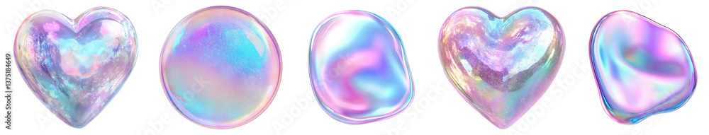 Canvas Prints a collection of iridescent bubble shapes: heart and orb featuring soft pastel colors with a playful,