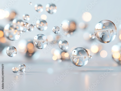 The watermark will not be included on Canvas Print.: A collection of shimmering water droplets suspended in air, creating an ethereal and soothing atmosp