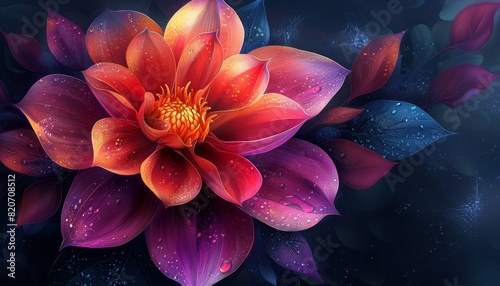The watermark will not be included on Canvas Print.: A colorful flower with red petals and green leaves by ai generated image