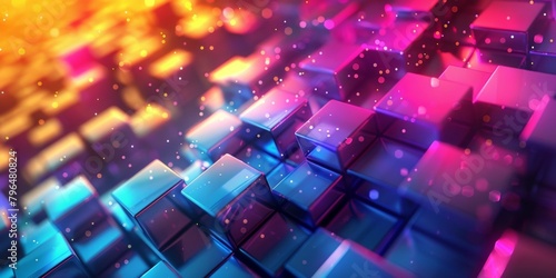 Canvas Print : A colorful image of blocks with a blue and pink background