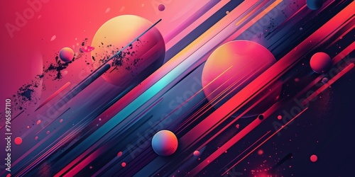 Canvas Print : A colorful space background with two planets and a lot of stars