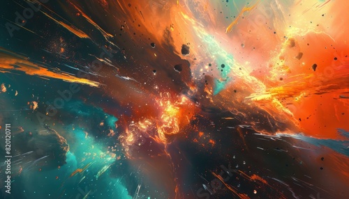 Canvas Prints a colorful space scene with a lot of debris and a bright orange star by ai generated image - Canvas Prints Canvas Prints a colorful space scene with a lot of debris and a bright orange star by ai generated image - Canvas Prints