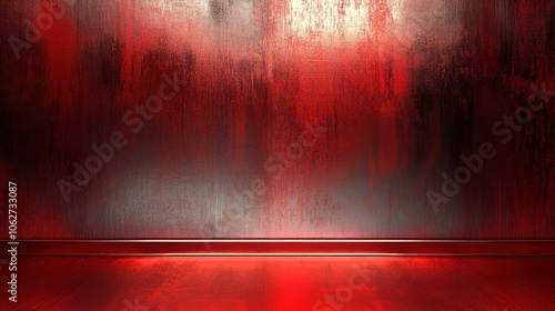 The watermark will not be included on Canvas Print.: A dark, red grunge textured wall with a thin light source above, and red floor with a subtle light r