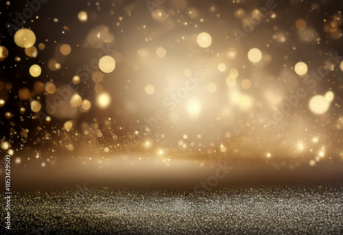 The watermark will not be included on Canvas Print.: A dark background with a hazy, sparkling foreground with soft, glowing lights scattered throughout -