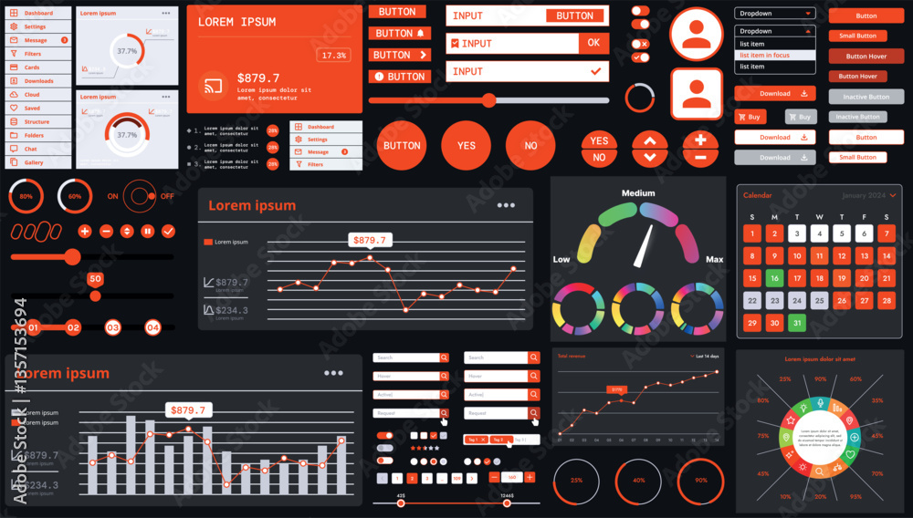 Canvas Prints a dark set of interface elements for web and mobile applications with modern icons, buttons, and gra