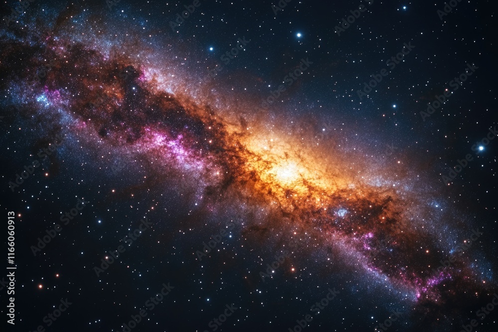 The watermark will not be included on Canvas Print.: A distant galaxy with a shining star at its core, perfect for sci-fi and space-themed projects