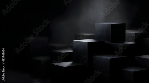 Canvas Prints a dramatic abstract background featuring layered matte black geometric cubes with contrasting shadow