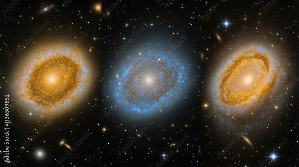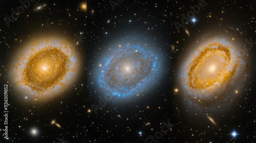 The watermark will not be included on Canvas Print.: A dynamic cosmic landscape of glowing nebulas and distant galaxies - abstract space background with v